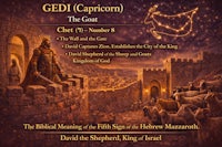 Incredibly, there is to be found an amazing connection in the Bible between the story of David and Capricorn, the Sea Goat. Also referred to in Jewish synagogue zodiacs as En-gedi, “the goats.” It was in the strongholds of En Gedi by the Dead Sea, where David sought refuge from King Saul who was pursuing him.