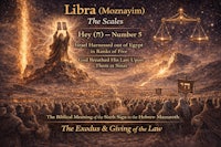 In Libra YHVH fulfills his promise to Abraham to liberate his seed after 400 years in a land not their own. Egypt is “weighed in the balances and found wanting.” Justice is poured out on the Egyptians in the form of 10 plagues, devastating the land and the death of the firstborn resulting in Pharaoh setting the captives free.